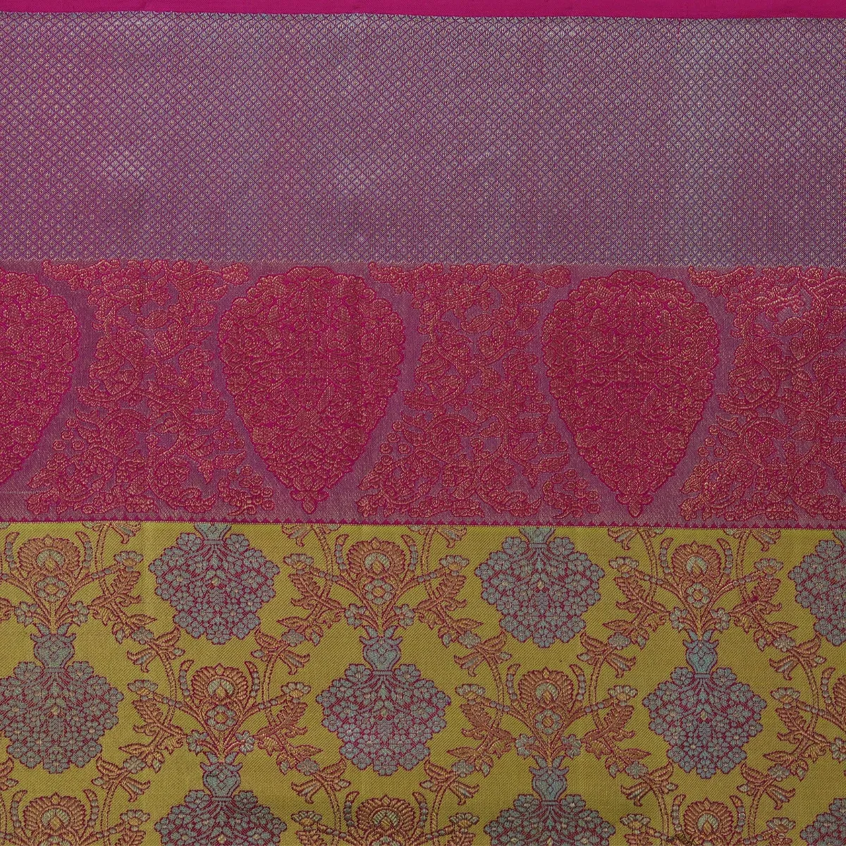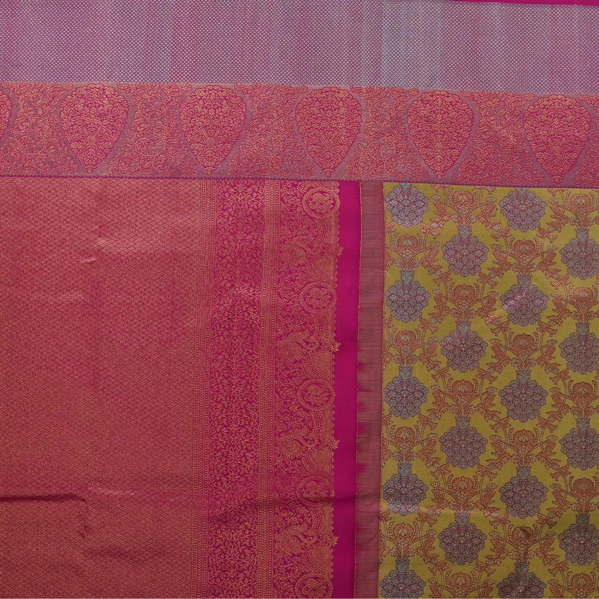 Step into tradition with our elegant gold Kanchipuram handloom silk saree.Woven with Silk Fast Jari, it radiates a rich and lustrous golden glow.Perfect for weddings, festive occasions, and cultural celebrations.Its classic Kodi design showcases the artistry of skilled handloom weavers.A timeless masterpiece that blends heritage, sophistication, and graceful beauty.