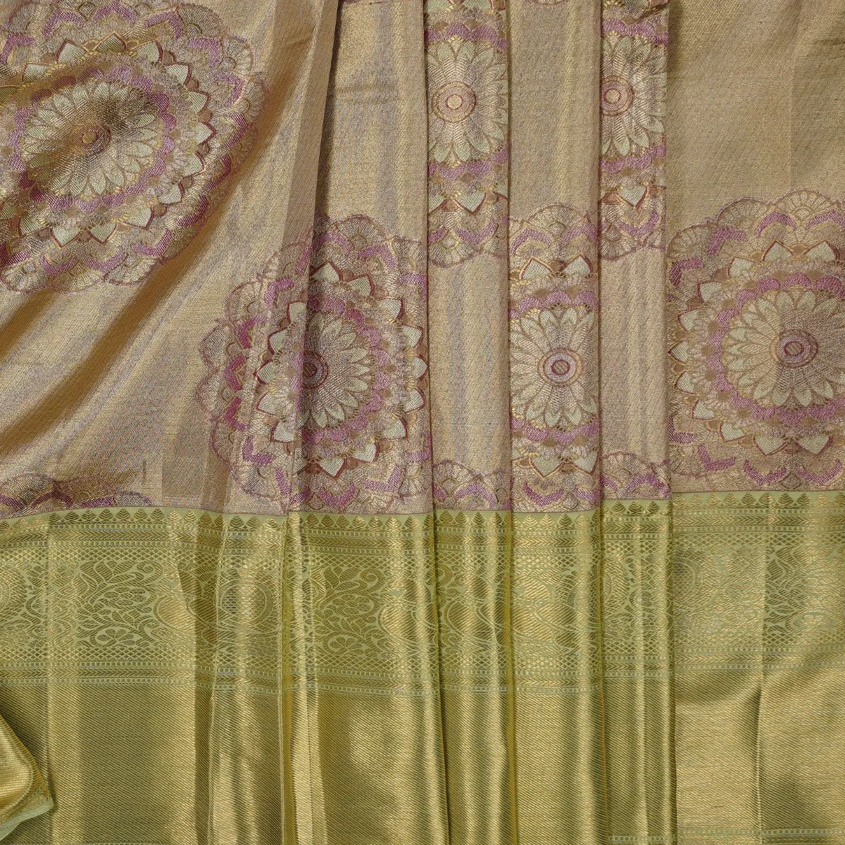Kanchipuram Handloom Tissue Silk Saree Pure Silver Jari