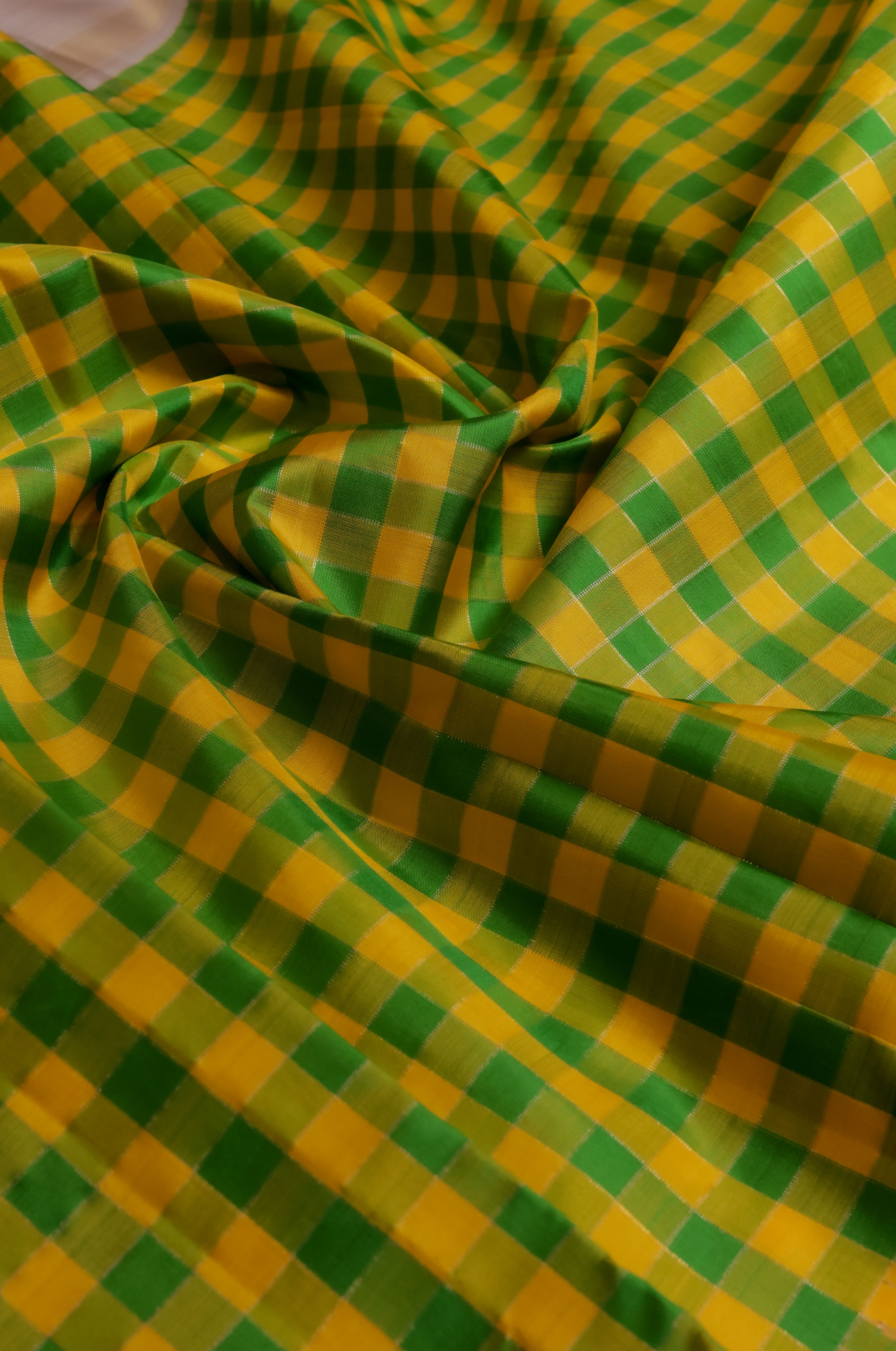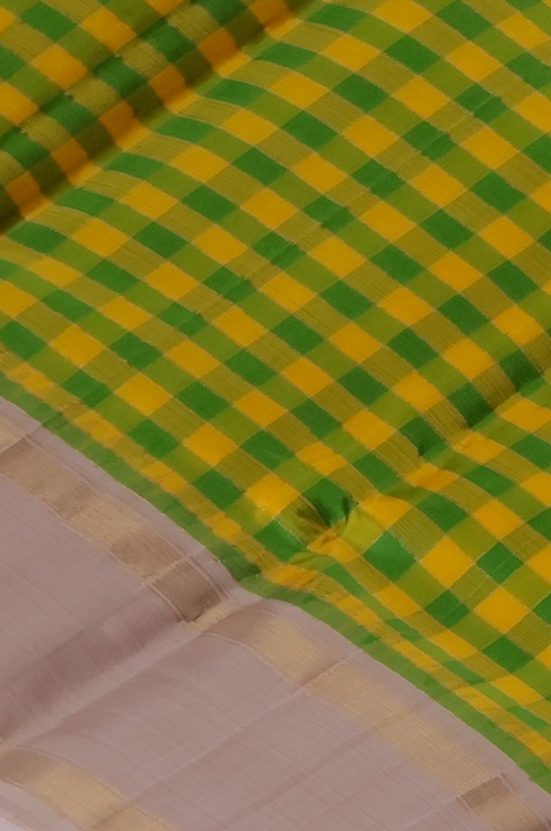 Make a graceful statement with this beautifully crafted saree crafted for Wedding Silk Sarees. made with luxurious fabric that drapes effortlessly like PINEAPPLE YELLOW ARANI SILK, it is highlighted with intricate design detailing inspired by CHEKED WITH CREAM COLOUR BORDER. An ideal choice for bridal wear, receptions, and traditional functions.